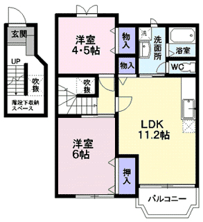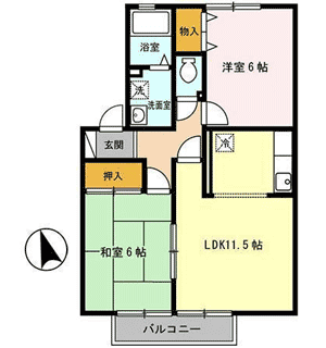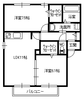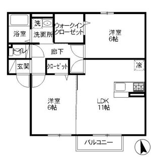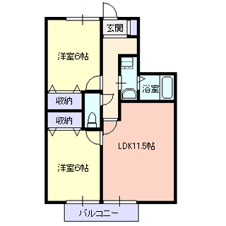 - 間取り2LDK(洋6、洋6、LDK11.5)