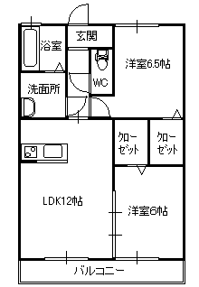 - 間取り2LDK(洋6.5、洋6、LDK12)