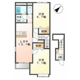 - 間取り2LDK(洋6.9、洋6.7、LDK10.1)