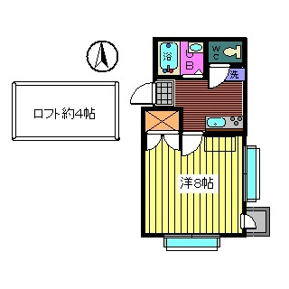 - 間取り1K+ロフト(洋8、ロフト)