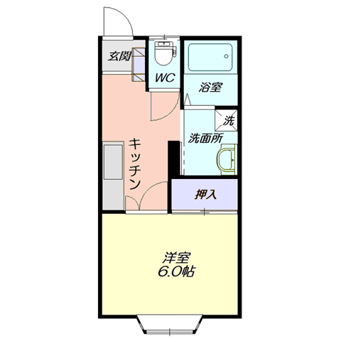 - 間取り1K(洋6、K)