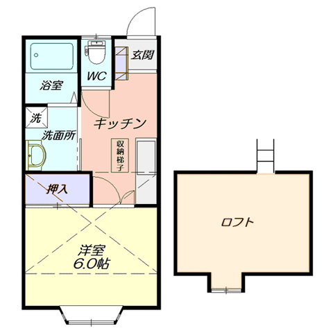 - 間取り1K+ロフト(洋9、ロフト)