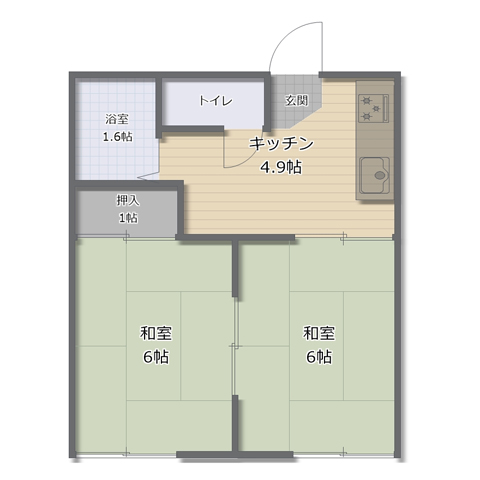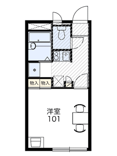 - 間取り1K+ロフト(洋9、大型ロフト)