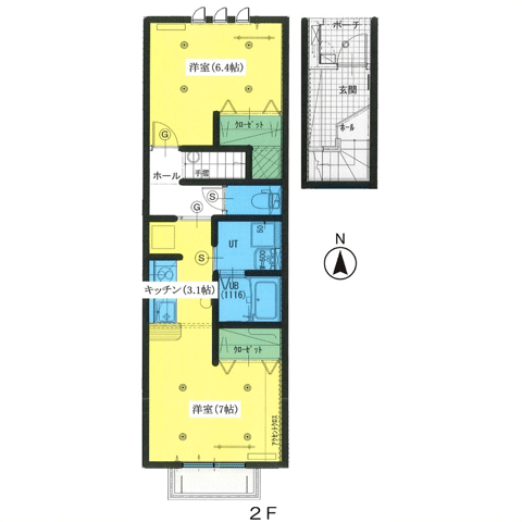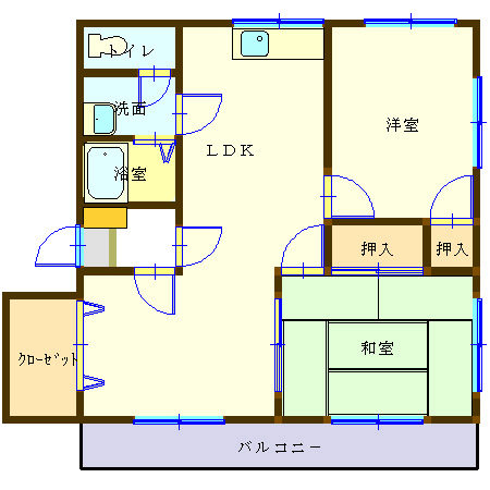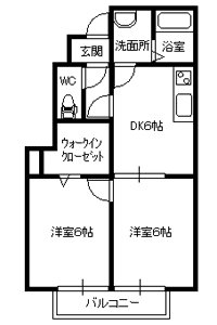 - 間取り2LDK(洋6、洋6、LDK11.5)