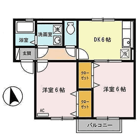 - 間取り2DK(洋6.9、洋6、DK8.9)
