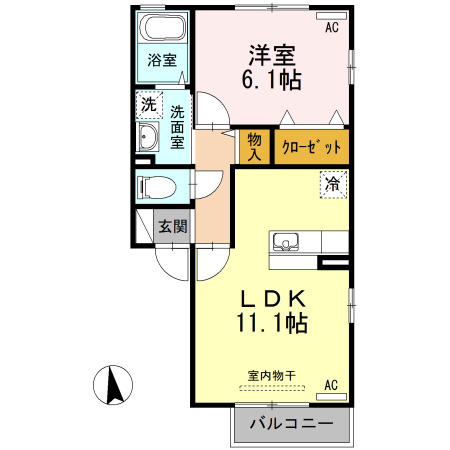 - 間取り1LDK(洋6.25、LDK8.6)