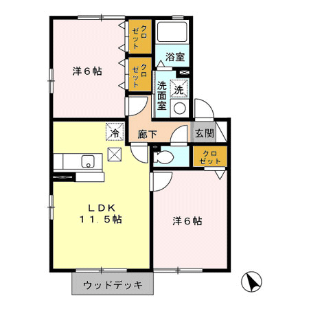 - 間取り2LDK(洋6、洋6、LDK11.5)