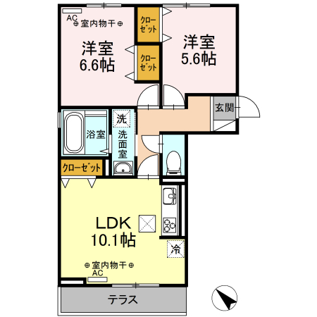 - 間取り2LDK(洋7.9、洋6、LDK11.5)