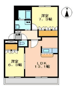 - 間取り2LDK(洋7、洋6.4、LDK13.5)