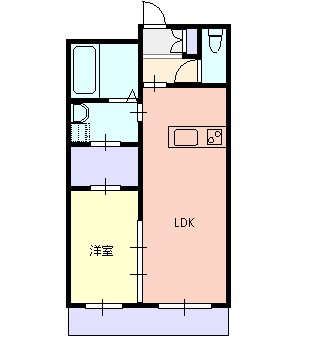 - 間取り1K(洋7、K)
